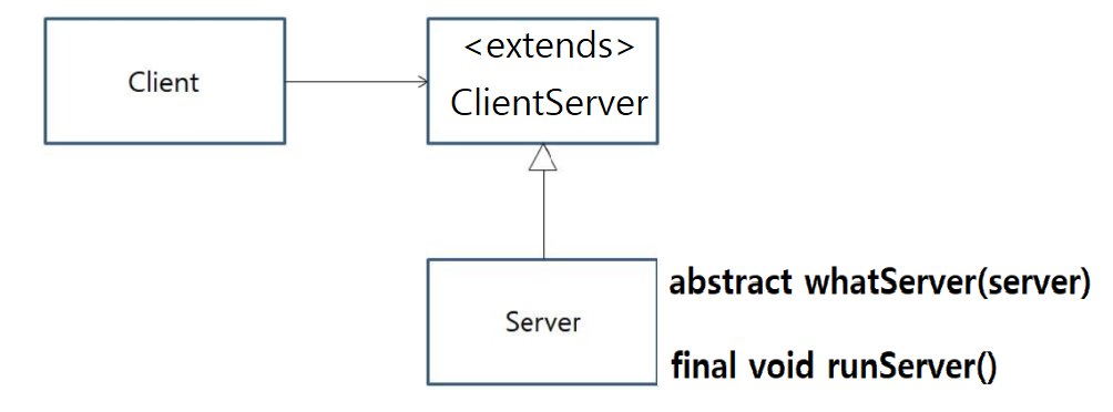 만약 Client입장에서 다른 서버를 사용한다고 생각해보자. 그럼 Client 클래스 자체를 바꿔야 하기 때문에 Server 클래스 입장에서 확장에 대해서 닫혀있다고 생각 할 수 있다.