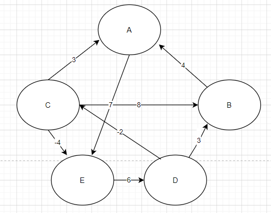 Distance[C][E] = min(Distance[C][E] , Distance[C][A] + Distance[A][E])